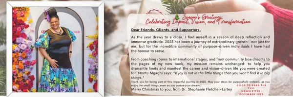 Dr. Stephanie Mahalia Fletcher-Lartey is a public health Epidemiologist turned transformation coach, career reignite strategist, speaker, and author.